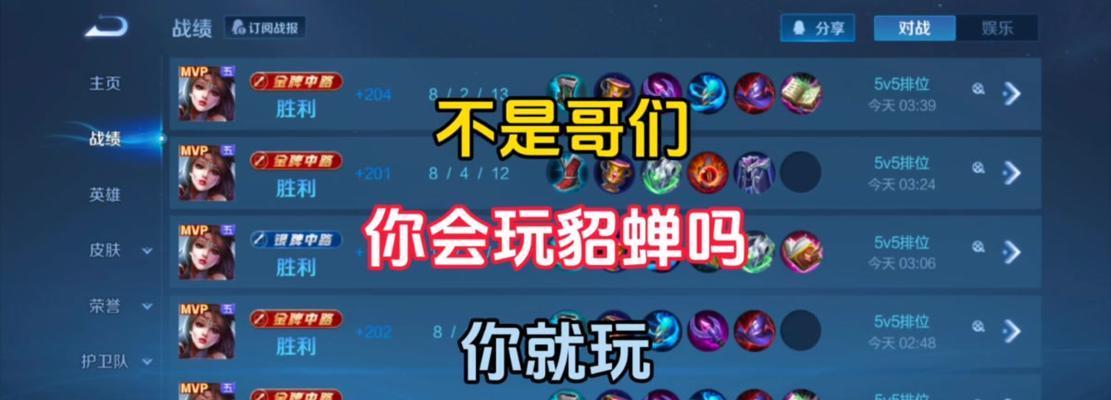 作为王者荣耀中的一名女性法师,貂蝉凭借其高爆发能力和优雅的外貌一直备受玩家们的喜爱。然而,在游戏中要发挥出貂蝉的最强战力,除了技术操作的熟练外,合理的出装也是至关重要的。本文将以貂蝉出装详细攻略为主题,为广大玩家提供一份最全面、实用的指南。