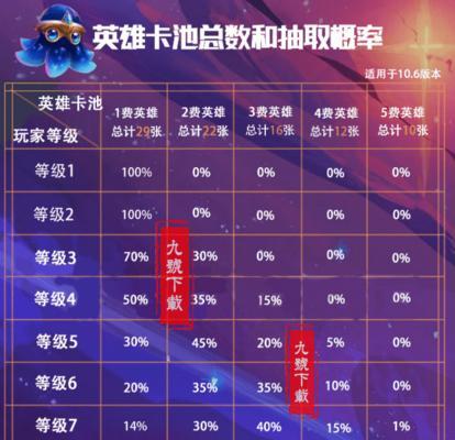 刷新概率是指在游戏中,某种棋子出现的概率。在S6.5版本中,每个英雄的出现概率都有所不同。