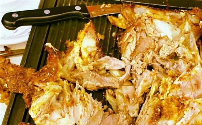 五、将碳烤器烤热,放入已准备好的沙葱。