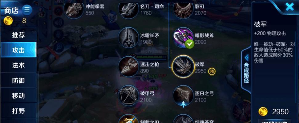 作为一个爆发输出型英雄,李白需要一个强大的装备来增加自己的爆发能力。破军是一款非常适合李白的装备,它可以提供大量的物理攻击力,并且还具备暴击效果。通过购买破军,我们可以让李白的技能伤害更高,更容易击败敌人。