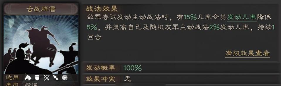 9.技能选择——以“鬼才”和“连环计”为主,提高生存和控制能力。