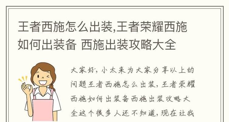 在《王者荣耀》这款热门手游中,正确的出装是取得胜利的关键之一。本文将为您详细介绍如何根据英雄的技能和定位,选择合适的装备,提升自己在游戏中的实力,成为战无不胜的王者。