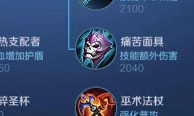 1.痛苦面具:提供法术攻击和法术穿透,使露娜对敌人的法术防御能力降低,增加伤害输出。