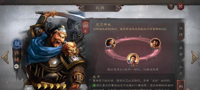 2.搭配合适的特性和技能,提高许褚的战斗力。