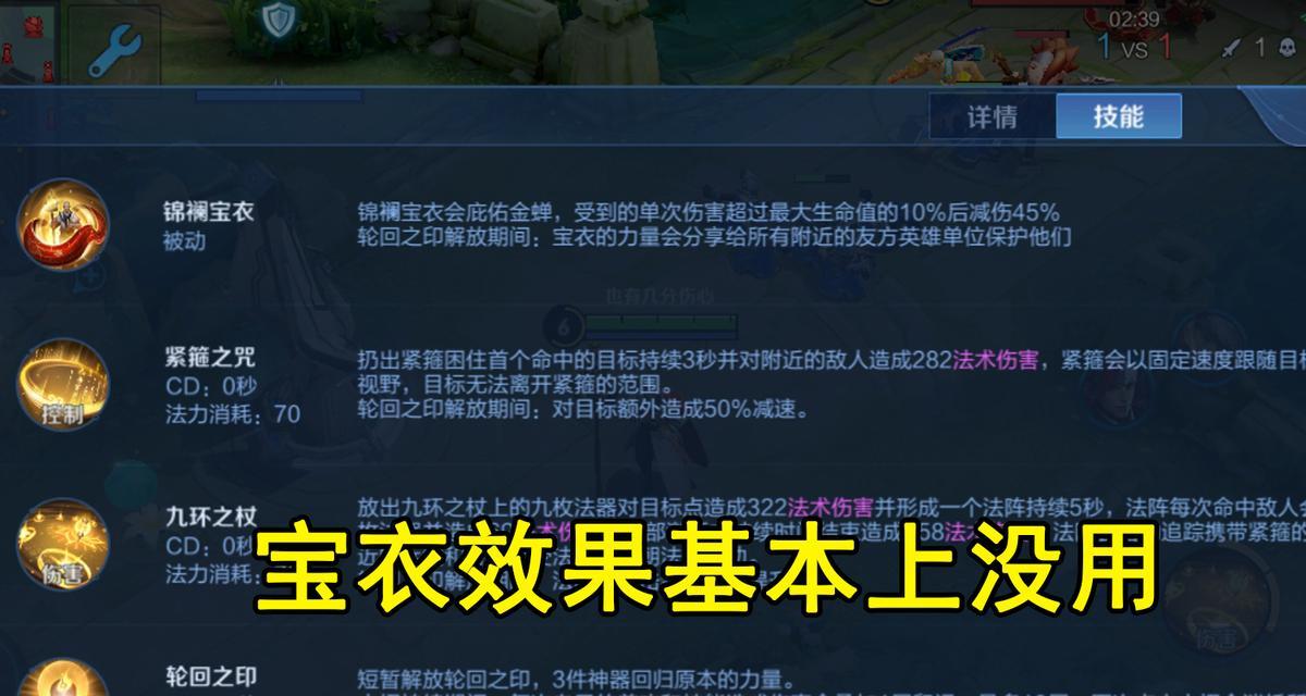 解释了选择鼓舞之盾作为补充装备的原因,该装备可以提供额外的生命值和冷却缩减。例如:鼓舞之盾的被动技能可以提供金蝉和友军额外的物理防御和魔法防御,并且在生命值低于30%时触发护盾效果。