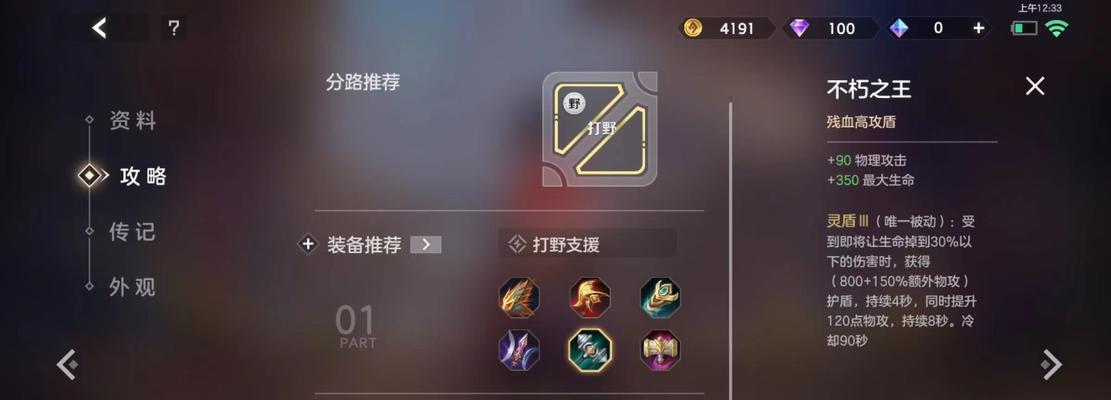 使用护符提高生存能力:为了提高美杜莎的生存能力,我们推荐购买一件不朽之盾,这可以提供额外的物理防御和生命值加成。