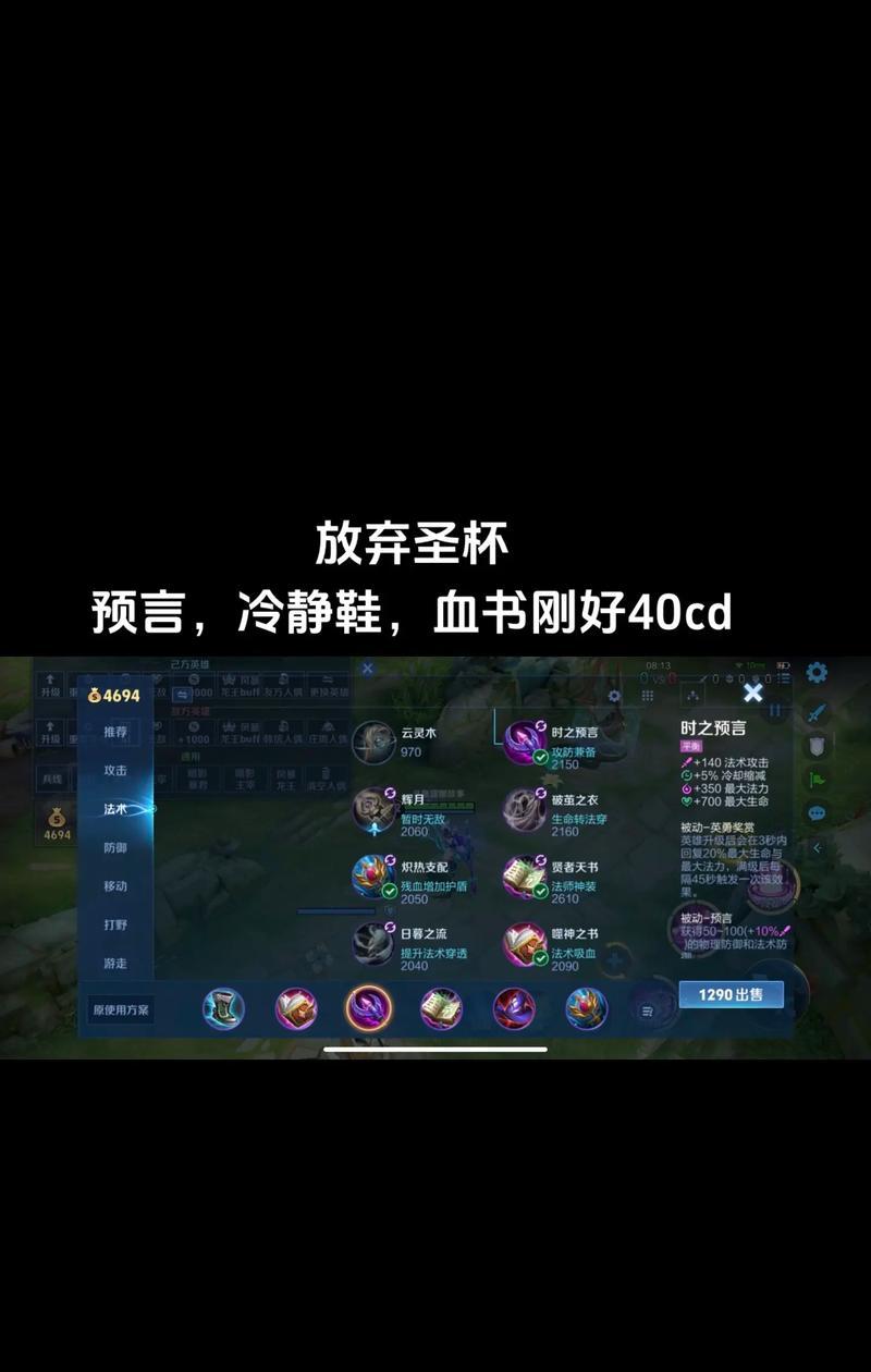 除了输出能力,我们也需要考虑到貂蝉的生存能力。在面对敌方输出较高的英雄时,我们可以选择“不祥征兆”和“守护者之铠”等防御装备,提高貂蝉的生存能力和抗伤害能力。