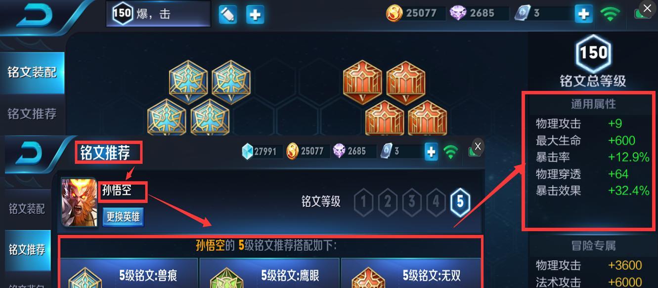 8.3“强击”铭文提供了额外的暴击几率和暴击伤害,增加了孙悟空的技能和普攻输出。