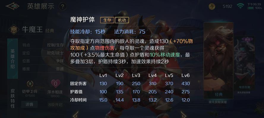 除了物理伤害,牛魔也需要面对敌方的法术伤害。选择王者之盾作为装备可以增加牛魔的法术抗性,减少来自法师英雄的伤害。同时,王者之盾还提供额外的生命值和护甲,增加牛魔的生存能力。