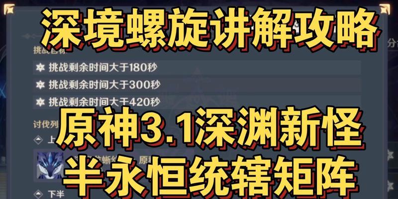 原神作为一款非常受欢迎的游戏,深渊层数越来越多,越来越难。本文将详细介绍如何打通32深渊12层,并满星通关。相信对于大家来说,这是一个非常有用的攻略。