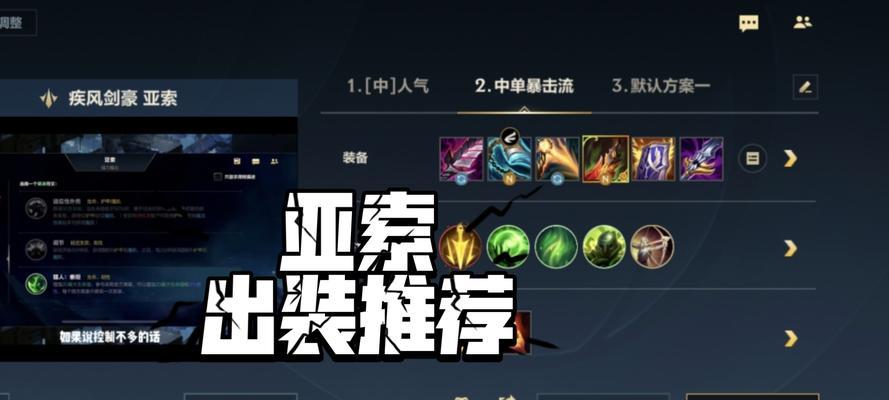 亚索的出装不仅仅是选择装备,还需要与技能的配合来发挥最大的效果。掌握好装备选择与技能配合的技巧可以让亚索在游戏中更加强势。