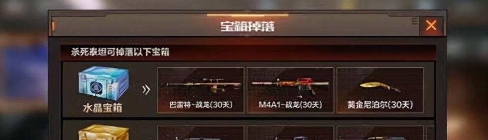 挑战模式是快速刷枪的有效方法。只要你的表现不是太差,每局游戏结束后至少能获得青铜宝箱,而最好的水晶宝箱则可能包含30天的高级武器,如巴雷特-战龙、M4A1-战龙和黄金尼泊尔。