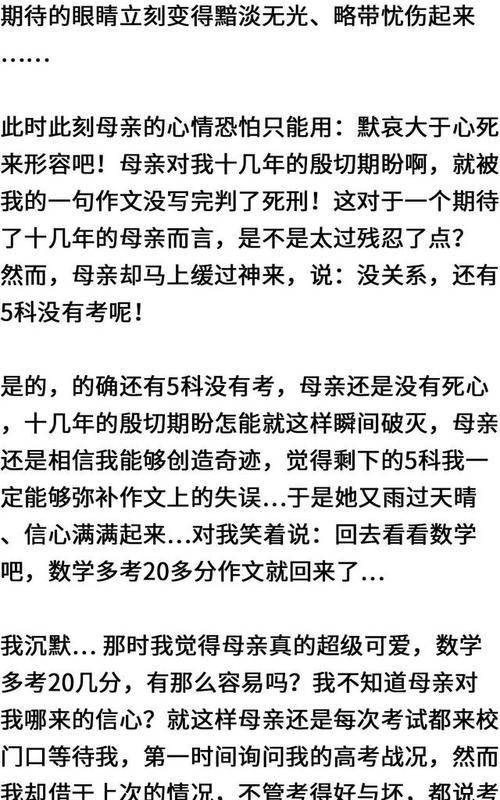 现代社会中,人们常常陷入忙碌的生活节奏中,忽略了与家人和朋友之间的联系与关怀。为了帮助人们意识到这一问题并提醒他们关注家庭和人际关系的重要性,一款以母亲的教训为主题的游戏应运而生。通过这款游戏,我们将能够进一步体验并学习到成为一个关心他人、重视家庭和人际关系的人所需具备的技巧和智慧。