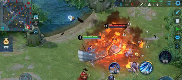 在破浪对决中,我们需要通过屏幕下方的虚拟按键来操纵英雄进行游戏。
