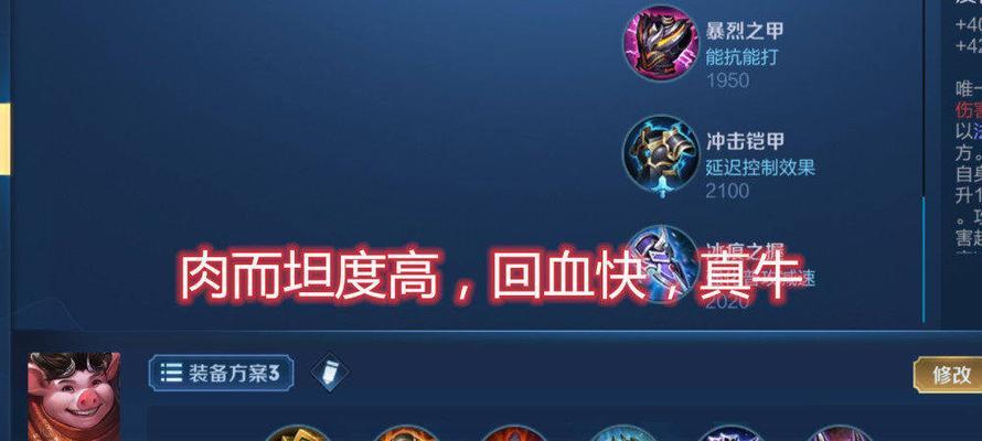 猪八戒作为王者荣耀中的坦克英雄之一,拥有出色的生存能力和输出能力,成为很多玩家心目中的选择之一。然而,在选择出装铭文方面,许多玩家常常不知所措。本文将为大家详细介绍猪八戒的出装铭文攻略,帮助你在战场上无往不胜。