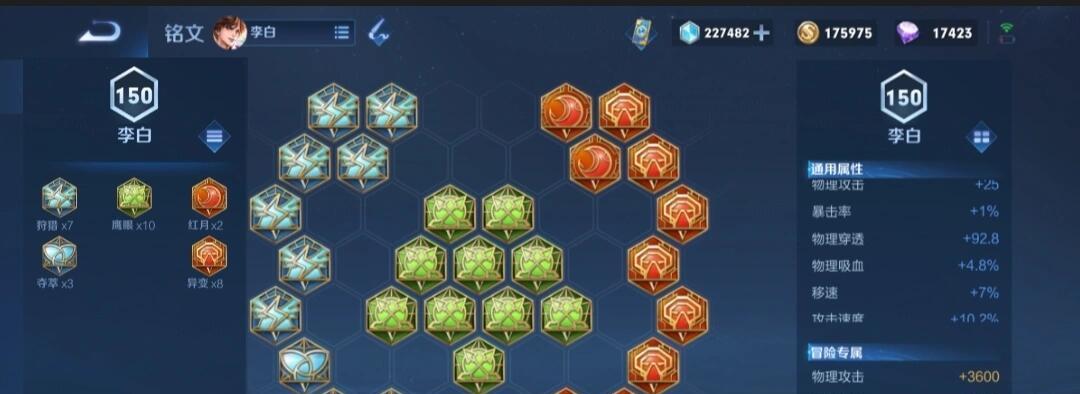 在物理攻击加成类金色铭文选择方面,我们可以考虑选择“狂暴”效果,每提升1级增加2点物理攻击。这样的效果将为李白提供更高的输出能力,能够更快地击杀敌方英雄。此外,还可以选择“破甲”效果,每提升1级增加3点物理穿透,帮助李白更好地突破敌方防御。