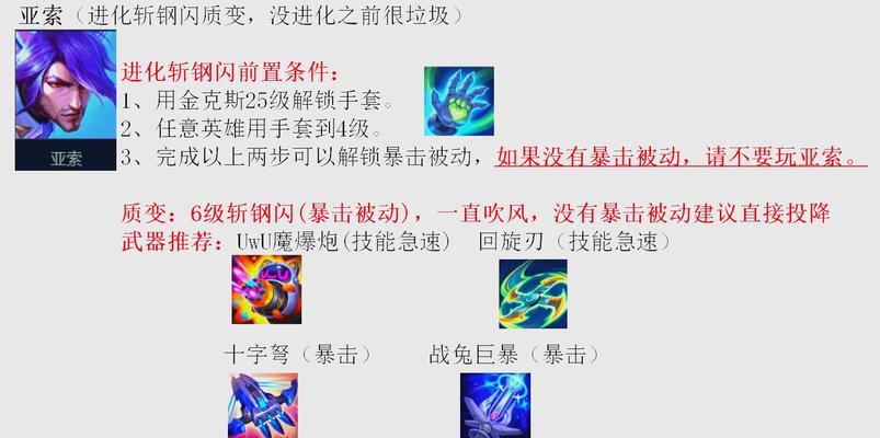 作为手游中广受欢迎的英雄角色,亚索以其高机动性和强大的输出能力成为许多玩家的最爱。本文将以亚索使用酒桶出装为主题,详细介绍如何打造无敌疾风剑豪!