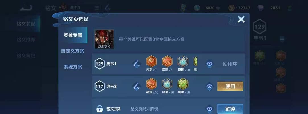 6.铭文系统详解:铭文系统是《王者荣耀》中非常重要的一部分,它可以为英雄提供各种属性加成和特殊效果。典韦作为一名坦克战士,铭文选择要根据他的定位和需求来进行。