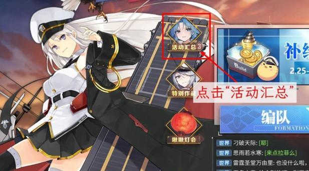玩家可以通过参加游戏内的各种活动获取碧蓝航线钻石,节约金钱同时也能提升游戏体验。