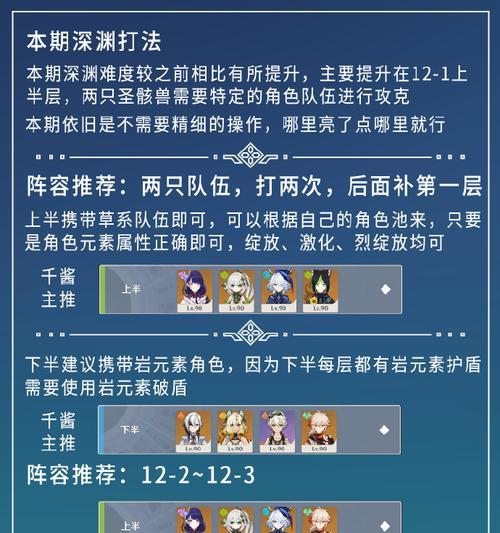 原神是一款备受瞩目的开放世界角色扮演游戏,其中最高难度的挑战即为12层。本文将为大家详细介绍攻略原神12层的方法和技巧,帮助玩家们顺利解锁最高挑战,成为原神大师。