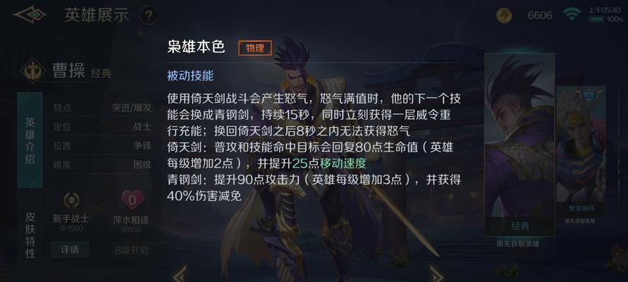 1.优点:曹操具有较高的机动性和输出能力,适合进行快速的突击和击杀。