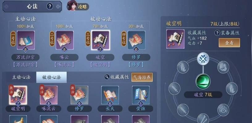 主动心法的等级分为一到七级,等级越高,效果越强。