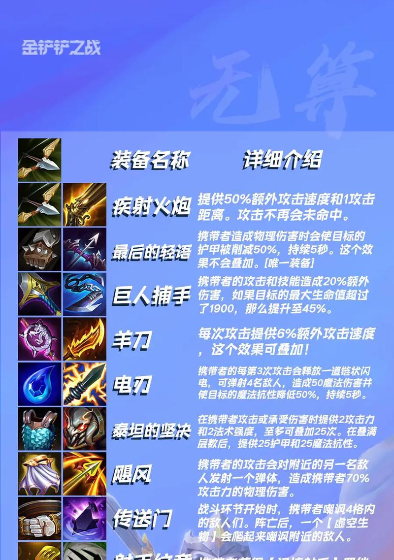 云顶之弈是一款热门手游,玩家需要在游戏中通过合理搭配英雄和装备,构建出最强的阵容。而装备在游戏中起到举足轻重的作用,正确的装备选择和合成技巧可以为你带来巨大的优势。本文将详细介绍云顶之弈的装备攻略,帮助玩家打造最强阵容。