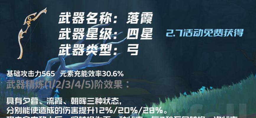 《原神》作为一款热门的开放世界游戏,拥有众多精美的武器装备。其中,落霞弓作为一件优秀的远程武器,备受玩家们的喜爱。但是,想要拥有一把落霞弓并不是一件容易的事情,本文将为大家详细介绍落霞弓的获取方法和突破材料,帮助玩家们轻松获得这件神器。