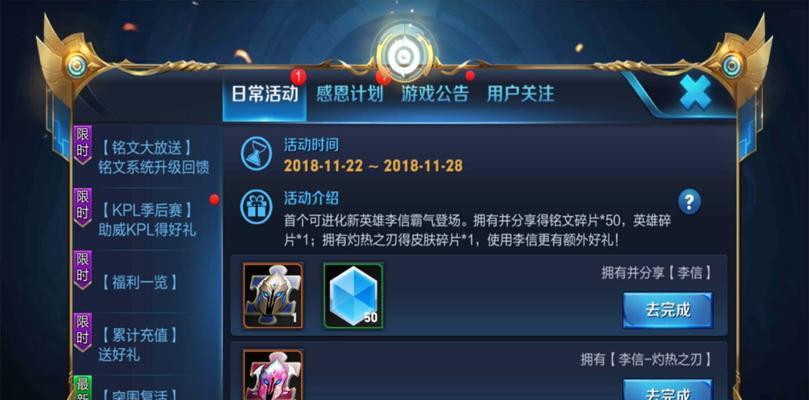 在王者荣耀游戏中,点券是非常重要的一种货币,能够购买各种道具和皮肤,提高游戏体验和战斗力。而在一些特定时间,玩家可以通过参与活动获得限时点券暴击,获得的点券数量将翻倍。本文将为大家详细介绍如何轻松获取90点券,并享受暴击优惠。