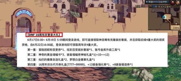 《地下城与勇士》(DNF)作为一款国民级的网络游戏,自2005年问世以来便备受广大玩家的喜爱。随着时间的推移,DNF已经陪伴无数玩家走过了十三个年头。为了庆祝这个值得纪念的日子,DNF官方推出了一系列的13周年庆活动。在这些活动中,玩家们不仅能够获得珍贵的奖励,还能够回顾那些曾经让人流连忘返的游戏经历。本文将重点介绍dnf13周年活动奖励的领取地址,帮助广大玩家在活动中更轻松地获取奖励。