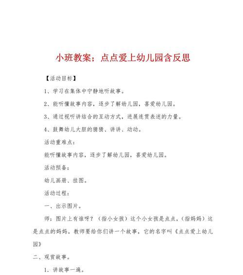 幼儿园游戏是幼儿学习和成长中不可或缺的一部分。通过游戏,幼儿能够培养社交能力、动手能力和创造力。然而,如何设计一份有趣又有效的幼儿园游戏攻略教案,成为了每位幼儿教师关注的重点。本文将为您详细介绍如何以爱上幼儿园游戏为主题的教案。