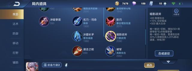 在选择第三件核心装备时,建议选择碎星锤。它可以增加自己的攻击力和物理穿透,让你能够轻松击败敌人。
