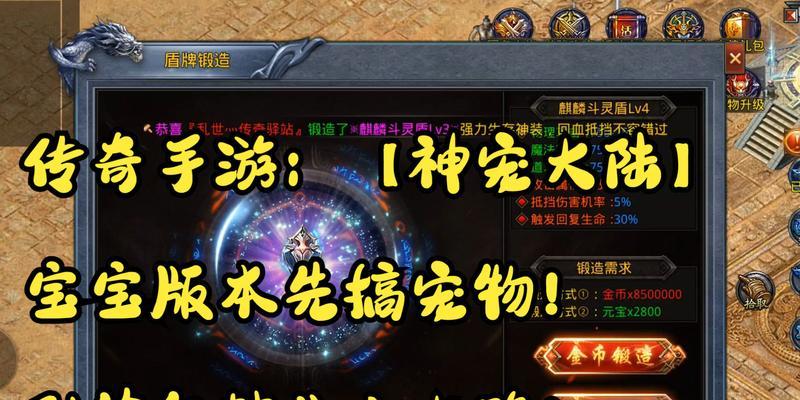 在《传奇手游》中,宝宝扮演着非常重要的角色,它们不仅可以提供强大的战力,还能帮助玩家完成各种任务和挑战。但是如何培养出一只终极宝宝,成为你在游戏中的得力助手呢?本文将为大家详细介绍《传奇手游》中的宝宝系统以及培养技巧,帮助你打造无敌战力!