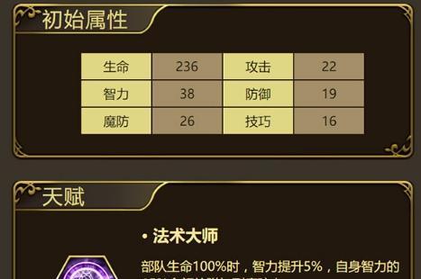 迪欧斯是一名攻击型法师,拥有较为出色的智力和魔力属性,但生命和防御相对较低。在阵容中应该放置在后排,以保证其生存能力,同时可以发挥出其强大的输出能力。