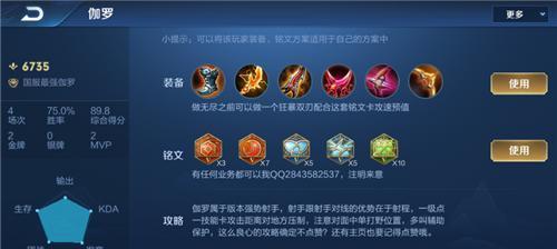 《王者荣耀》是一款备受热爱MOBA游戏的玩家追捧的手游,而以伽罗作为其中的英雄角色之一,以其强大的剑术和惊人的机动性在游戏中广受欢迎。本文将为大家详细介绍以伽罗的铭文和出装攻略,帮助玩家更好地掌握这位剑圣英雄的技巧。
