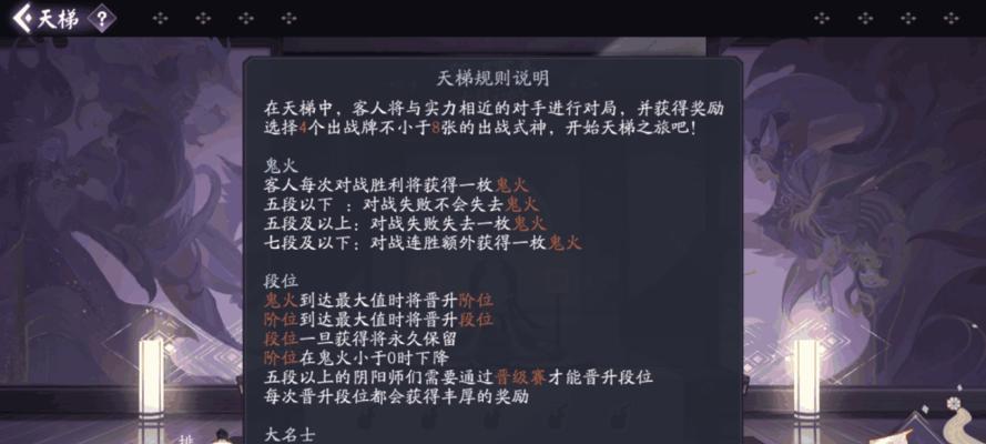 在开始玩《阴阳师》辉月之夏之前,需要先了解游戏的背景和规则。这个游戏的背景是日本传说中的妖怪故事,玩家需要扮演式神师,与各种妖怪战斗。同时,游戏中有一些基本规则需要遵守,比如选择式神、组建阵容、升级等。