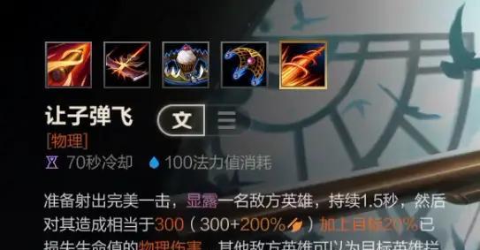 破晓之箭是凯特琳的大招,可以对敌人造成巨额伤害。玩家需要选择合适的时机和目标释放大招,尽量击杀重要目标或者在团战中影响多个敌人。