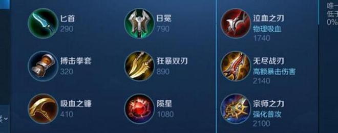 1.核心装备选择:破军、影刃、近卫荣耀