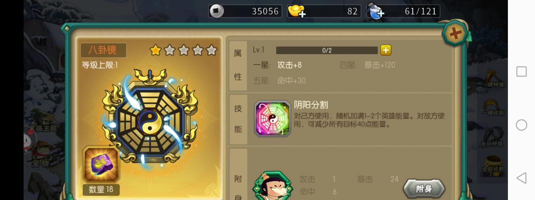 葫芦手游中的法宝系统是一个强大的辅助系统,玩家可以通过收集法宝碎片、进阶和升级来提升法宝的技能和属性。不同的法宝技能有不同的效果,玩家可以根据战斗策略和需求进行选择。灵活运用法宝技能,可以在战斗中起到意想不到的效果,给予敌人致命一击。