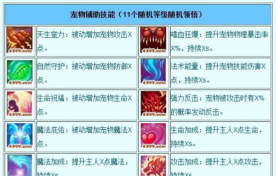 游戏中的宠物技能可以通过培养进行进一步强化。我们需要制定一个合理的高级技能培养策略,提升宠物的战斗力。