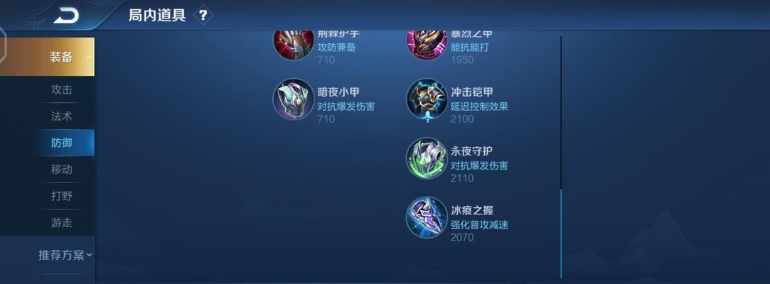 冰痕之握是一件可以提供女娲坚韧度和自保能力的出装选择。冰痕之握提供了额外的生命值、护甲和冷却缩减。这些属性的提升让女娲在面对物理输出英雄时更加难以击杀,增加了她的生存能力。