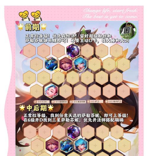 云顶之弈是一款风靡全球的策略手游,玩家需要根据不同的版本和局势,灵活搭配阵容,通过策略和运气来击败对手。本文将为大家分享一份详细的云顶之弈阵容搭配攻略,帮助玩家们打造最强的王者阵容,轻松上分。