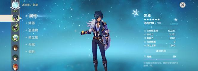 在原神游戏中,凯亚是一个非常受欢迎的角色之一,他的技能属性也备受玩家们的关注。本文将全面解析凯亚的技能属性,帮助玩家更好地使用凯亚打出最高伤害。