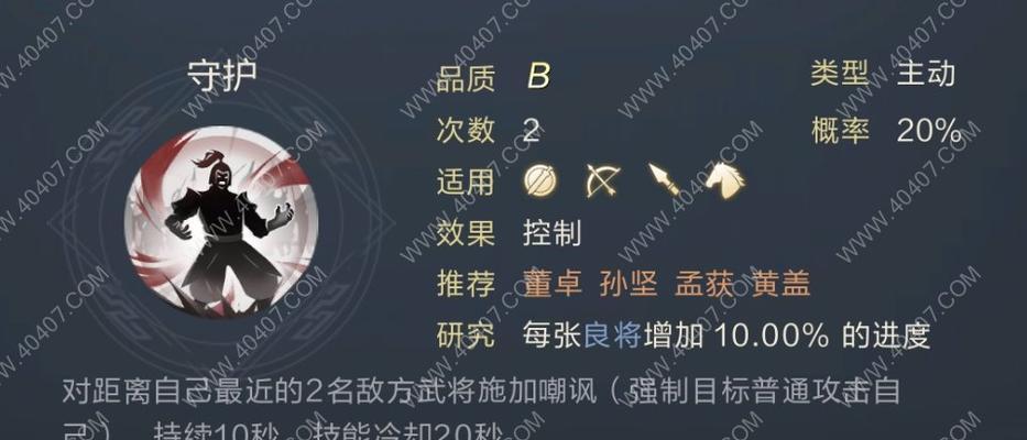 从以上介绍可以看出,皇甫嵩的技能覆盖了攻击、防御、群攻、援军等多个方面,非常适合在战场上发挥自己的战斗力。