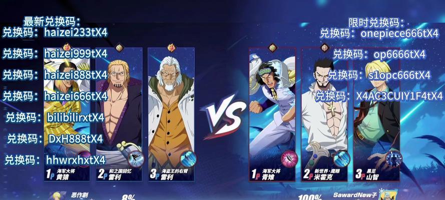 作为一款备受期待的海战策略手游,《航海王热血航线》在发布后迅速赢得了众多玩家的喜爱。而在游戏中,兑换码也是玩家们领取各种福利和奖励的重要方式。本文将为大家整理最新的兑换码信息,帮助玩家们轻松领取奖励。