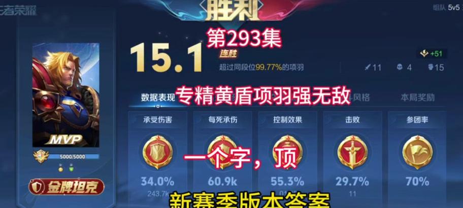 在王者荣耀中,项羽作为一名强力的近战战士,能够在战场上肆无忌惮地冲杀敌人,是许多玩家喜爱的英雄之一。本文将分享关于项羽最新的半肉出装攻略,帮助玩家们更好地运用项羽的优势,在战场上成为一名无敌的战神。