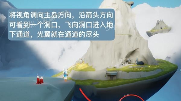 在这个位置,玩家需要在黑暗洞穴中找到一个巨大的石头,然后使用飞行技能将自己投射到天空中,最后在空中寻找季节光翼。
