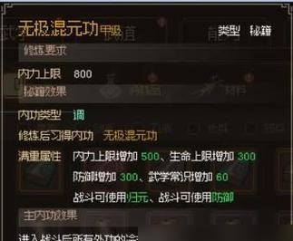 内功系统是游戏中的一个重要系统,通过学习不同的内功可以提升角色的能力和技能。内功分为攻击型、防御型、辅助型等多种类型,根据自己的需求选择相应的内功可以大大提升角色的实力。