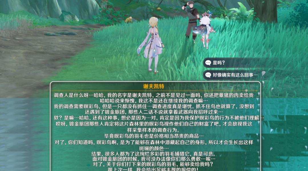 接到任务之后,你需要去收集梦幻鸟羽这个道具。这个道具可以在世界各地的梦幻鸟群体上获取。