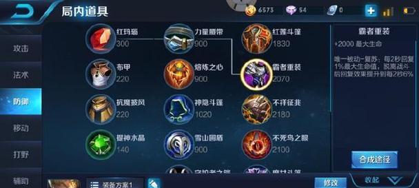 在战斗中,合理选择防御装备可以增加自己的生存能力。对于近战英雄来说,选择一些提高生命值和护甲的装备可以让自己更加耐久。